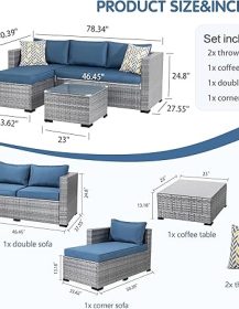 RoyalCraft Outdoor Patio Furniture Set, 4 Piece Outdoor Rattan Sofa Set, All Weather Wicker Conversation Set with Coffee Table for Porch Backyard Garden, Grey