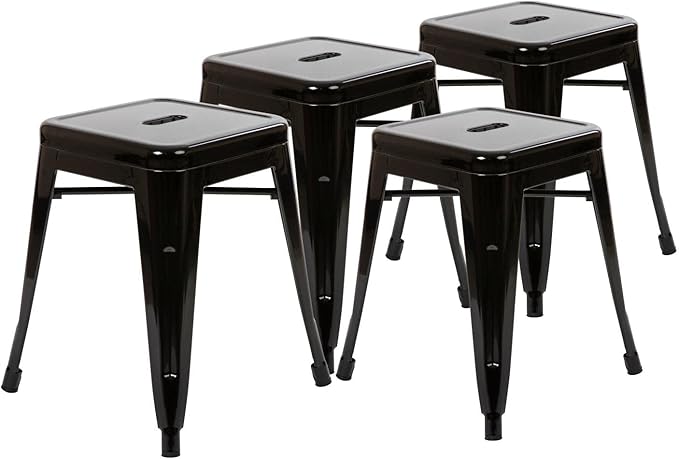 Flash Furniture Metal Dining Table Height Stool – Backless Black Kai Commercial Grade Stool – 18 Inch Stackable Dining Chair – Set of 4