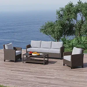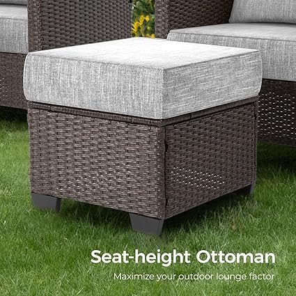- Stylish Wicker Rattan: Featuring handwoven rattan, this outdoor furniture set enhances your outdoor area with its elegant appearance, while it is strong enough to withstand all-weather variations for long service life.