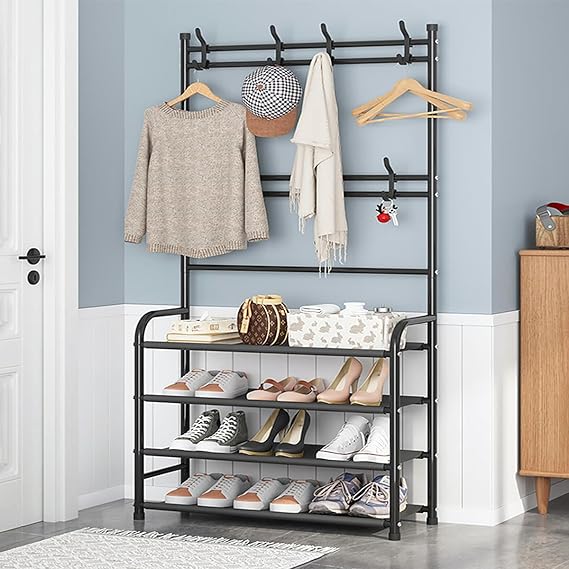 • 【Shoe Rack with Coat Rack】Shoes rack for floor can store large volumes of items and save a lot of space. keep your bedroom, hallway, and garage neat and organized.